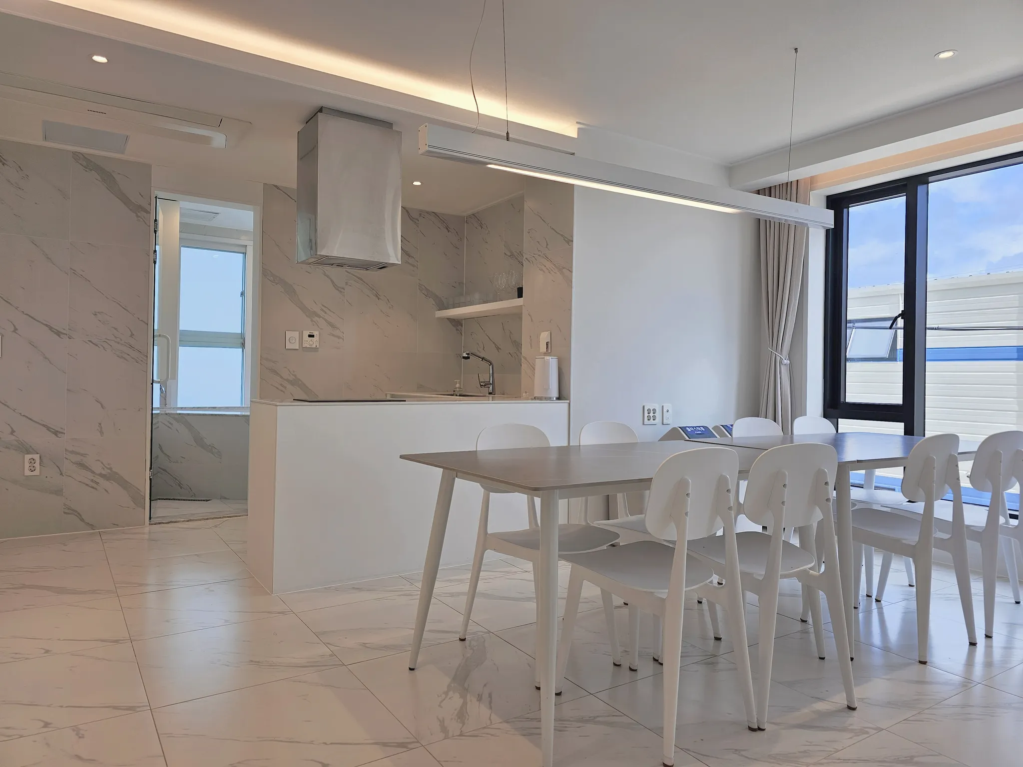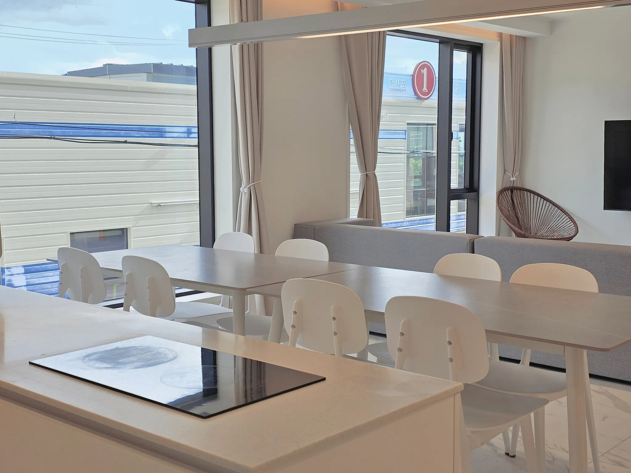 온수욕조 TV 소파 냉장고 전자렌지 전기포트 인덕션(2구) 아기의자 칼 가위 도마 국자 집게 머그컵 그릇 접시 수저 와인잔 와인오프너 식탁 의자 화장대 드라이기 샴푸 린스 바디워시 비누 냄비 프라이팬