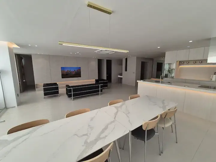 TV 쇼파 냉장고 전자렌지 전기포트 인덕션(2구) 아기의자 칼 가위 도마 국자 집게 머그컵 그릇 접시 수저 와인잔 와인오프너 식탁 의자 드라이기 샴푸 린스 바디워시 비누
