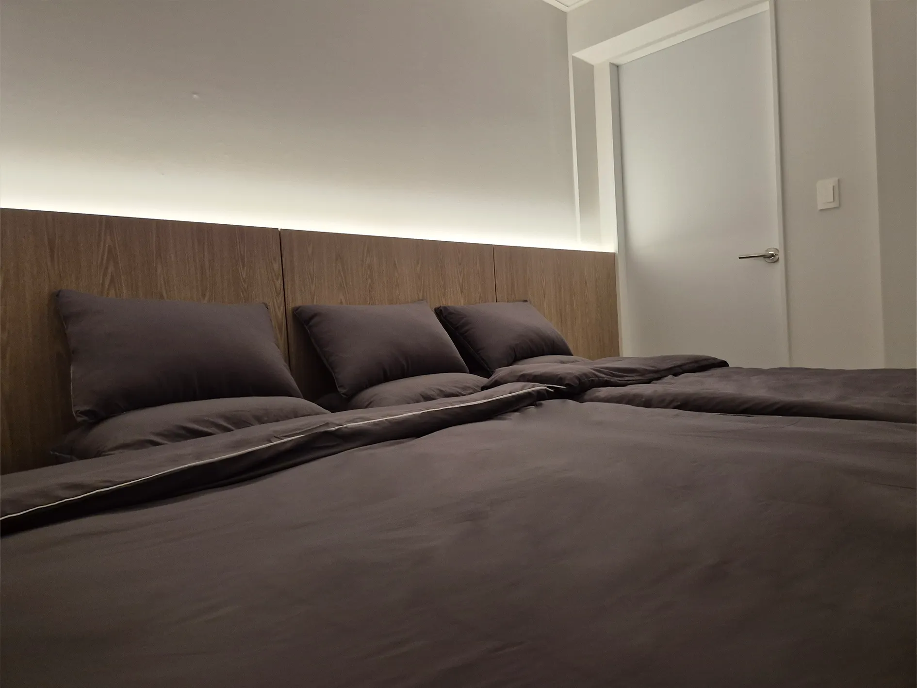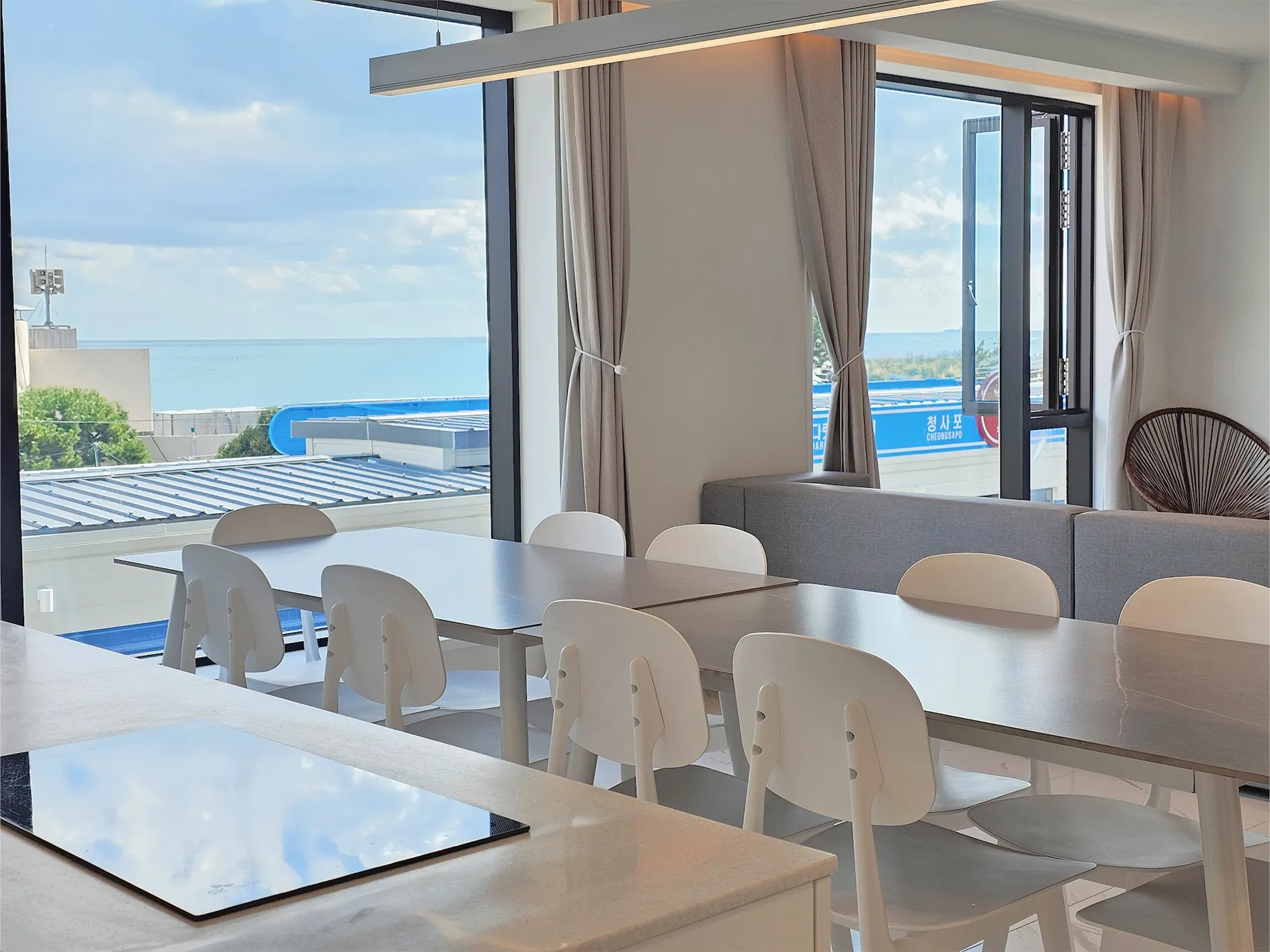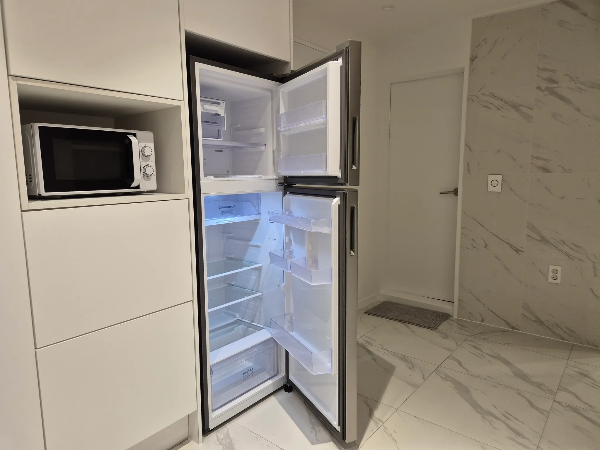 온수욕조 TV 소파 냉장고 전자렌지 전기포트 인덕션(2구) 아기의자 칼 가위 도마 국자 집게 머그컵 그릇 접시 수저 와인잔 와인오프너 식탁 의자 화장대 드라이기 샴푸 린스 바디워시 비누 냄비 프라이팬